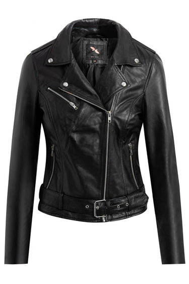 OBS! Fjernlager. Levering kan blive forlænget med 1-2 dage, hvis varen ikke findes i vores butik lige nu.Super flot bikerjakke fra BTFCPH med lange ærmer, cool sølvdetaljer og den lukkes med en asymmetrisk lynlås langs fronten.Den har også et smart bælte og et cool udtryk.