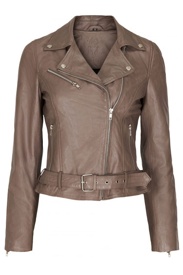 - Smart bikerjakke i blødt læder. Jakken kan bruges med åben krave eller helt lukket til. Kraven kan fastsættes med trykknapper. Lukkes med lynlås i jakkens venstre side. 3 lommer med lynlås samt lynlås for enden af ærmerne. Aftageligt bælte med metalspænde forneden. Pasform: Let figursyet.Mål: Måler 55,5 cm. foran i str. 38.Materiale: 100% Lamb leather | Inderfor: 100% Polyester.Vask: Må ikke vaskes. Rensning ved skindspecialist.Vær opmærksom på, at materialer af naturlig oprindelse kan variere i farven.