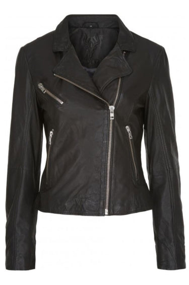 OBS! Fjernlager. Levering kan blive forlænget med 2-3 dage, hvis varen ikke findes i vores butik lige nu.Cool bikerjakke fra Notyz med lange ærmer, en bred åben krave i halsen og en klassisk asymmetrisk lynlåslukning langs fronten.Jakken er også detaljeret med lommer og smarte lynlåse der giver den et råt udtryk.