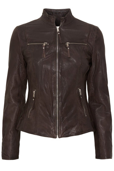 Biker Jacket w. collar Almond Brown w. Silver acc.