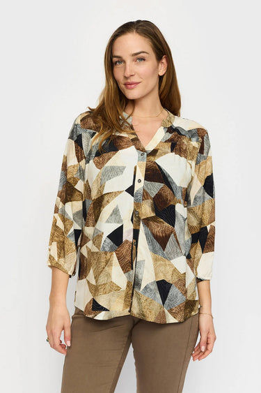 OBS! Fjernlager. Levering kan blive forlænget med 2-3 dage, hvis varen ikke findes i vores butik lige nu.Flot skjorte fra 2-Biz med ¾ lange ærmer, v-udskæring i halsen og knaplukning langs fronten.