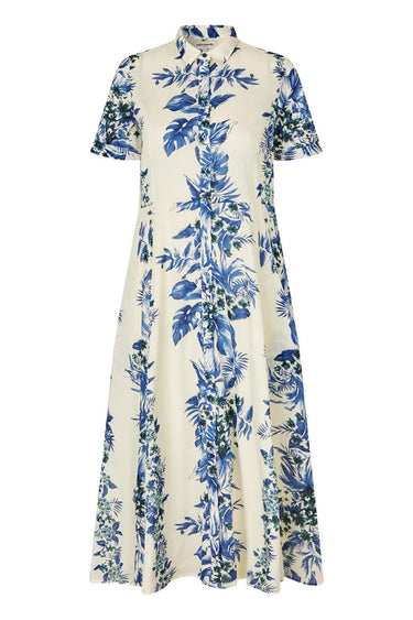 OBS! Fjernlager. Levering kan blive forlænget med 2-3 dage, hvis varen ikke findes i vores butik lige nu.Smuk maxi kjole fra Lollys Laundry med korte ærmer, en lille skjortekrave i halsen og knaplukning langs fronten.Kjolen har også et smukt print og en dejlig blød bomuldskvalitet.
