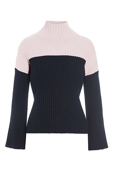 Bloom rib bluse BLACK/PALE PINK BLOCK