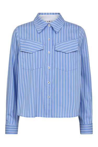 OBS! Fjernlager. Levering kan blive forlænget med 2-3 dage, hvis varen ikke findes i vores butik lige nu.Smart skjorte fra Haute L'amitié med lange ærmer, krave i halsen og flotte lommer på brystet.