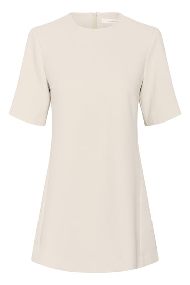 OBS! Fjernlager. Levering kan blive forlænget med 2-3 dage, hvis varen ikke findes i vores butik lige nu.Fin enkel kjole fra InWear med ½ lange ærmer, rund hals og en cropped længde.