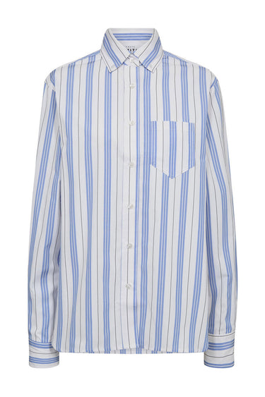 Button Down Stripe Shirt White Blue Stripe HL10257