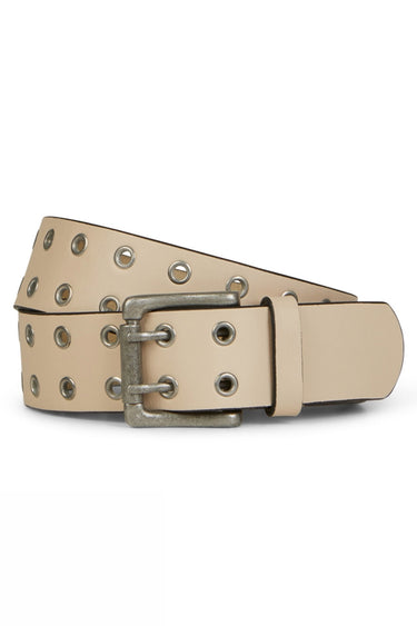 OBS! Fjernlager. Levering kan blive forlænget med 1-2 dage, hvis varen ikke findes i vores butik lige nu.Flot skindbælte fra Munthe med smarte nitter og et firkantet spænde.
