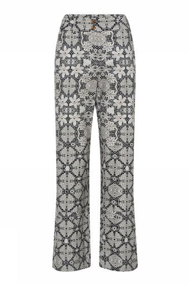 - OBS! Fjernlager. Levering kan blive forlænget med 2-3 dage, hvis varen ikke findes i vores butik lige nu.Flotte bukser fra Gustav med høj talje, et straight leg snit og det flotteste print samt fine knapdetaljer foran.