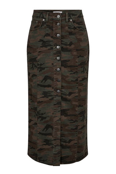 OBS! Fjernlager. Levering kan blive forlænget med 2-3 dage, hvis varen ikke findes i vores butik lige nu.Flot denim nederdel fra Co'couture med høj talje, klassiske lommer og smarte knapdetaljer langs fronten.Nederdelen har også en dejlig bomuldskvalitet og et cool camouflage print.