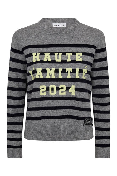 Cash LS Stripe Logo Knit Light Grey Melange HL10261