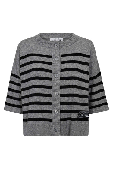 Cash Stripe SS Cardigan Light Grey Melange/Black Strip HL10219