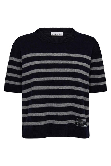 Cash Stripe SS ONeck Navy/Grey Melange HL10217