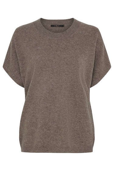 Cashmere Knit w. Short Sleeves Ash Brown Melange 500085