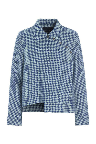 OBS! Fjernlager. Levering kan blive forlænget med 2-3 dage, hvis varen ikke findes i vores butik lige nu.Smuk pepitaternet jakke i en lækker blød hørkvalitet. Jakken har en asymmetrisk knaplukning. Med de fine tern vil den tilføre casual elegance til enhver underdel. Kombinerer du jakken med de matchende Chesu bukser, får du et gennemført lækkert look.