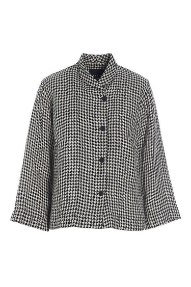 OBS! Fjernlager. Levering kan blive forlænget med 2-3 dage, hvis varen ikke findes i vores butik lige nu.Smuk pepitaternet jakke i en lækker blød hørkvalitet. Jakken har gennemgående knaplukning og et helt enkelt snit. Med de fine tern vil jakken tilføre casual elegance til enhver underdel.