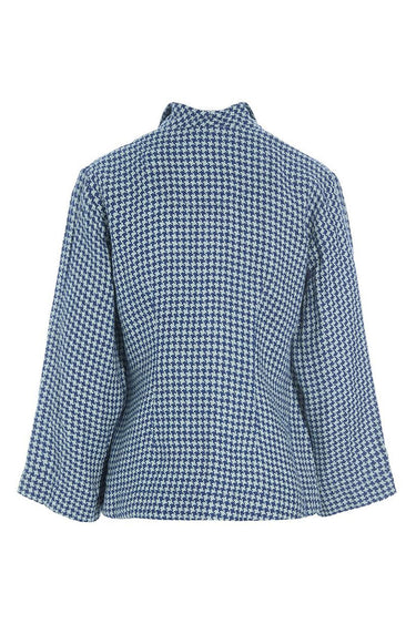 OBS! Fjernlager. Levering kan blive forlænget med 2-3 dage, hvis varen ikke findes i vores butik lige nu.Smuk pepitaternet jakke i en lækker blød hørkvalitet. Jakken har gennemgående knaplukning og et helt enkelt snit. Med de fine tern vil jakken tilføre casual elegance til enhver underdel.