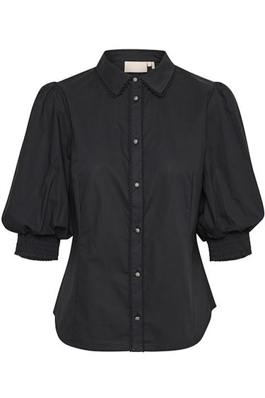 Sød og feminin bluse fra Karen By Simonsen med korte pufærmer og en fin krave om halsen.