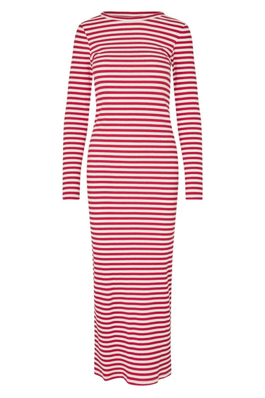 OBS! Fjernlager. Levering kan blive forlænget med 2-3 dage, hvis varen ikke findes i vores butik lige nu.Flot figursyet kjole fra Lollys Laundry med lange ærmer, bådudskæring i halsen og slids bagtil.Kjolen har også et klassisk stribet mønster og en dejlig blød kvalitet.