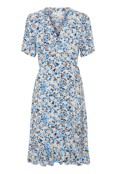 - OBS! Fjernlager. Levering kan blive forlænget med 2-3 dage, hvis varen ikke findes i vores butik lige nu.Feminin kjole fra Part Two med korte ærmer, v-udskæring i halsen og skønne flæsedetaljer.