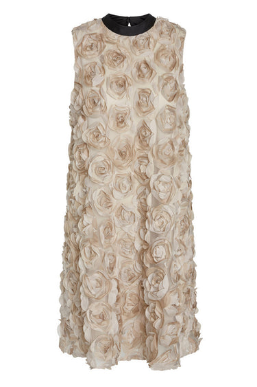 - OBS! Fjernlager\nLeveringen kan blive forlænget med 1-2 dage, hvis varen ikke er at finde i vores butik lige nu.\n\nClarkiaBBChi dress is an elegant and unique piece, designed with roses that add a sophisticated and feminine touch. The dress features a regular fit with an A-line silhouette, providing a flattering and comfortable wear experience. It fastens with buttons at the neck, creating a stylish and elegant look. Perfect for festive occasions or as a statement piece in your wardrobe.Style the ClarkiaBBChi dress with high heels and an elegant clutch for a chic party look. For a more casual outfit, pair the dress with flat shoes and a simple handbag. The beautiful details and unique rose design make this dress a standout choice that will add an extra layer of elegance to any occasion.- Regular fit for a comfortable wear.- A-line silhouette that flatters the figure.- Beautiful rose design \n\nModel ClarkiaBBChi dress Dress BBW4180 Beige/black\n\n100% Polyester