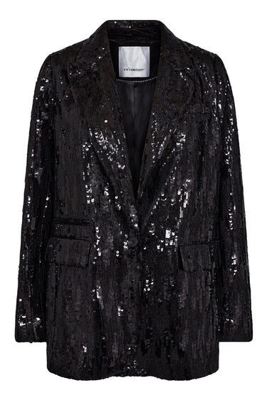 OBS! Fjernlager. Levering kan blive forlænget med 2-3 dage, hvis varen ikke findes i vores butik lige nu.Skøn pailletblazer fra Co'couture med lange ærmer, v-udskæring i halsen og et helt fantastisk udtryk.