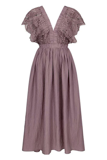 OBS! Fjernlager. Levering kan blive forlænget med 2-3 dage, hvis varen ikke findes i vores butik lige nu.Utrolig smuk kjole fra Copenhagen Muse med de flotteste broderet blonder i overdelen, elastikkant i taljen og flotte flæseeffekter i skørtet.Kjolen har derudover v-udskæring med hægtelukning, lommer i siderne og et dejlig blødt underskørt.