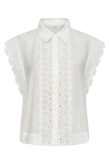 OBS! Fjernlager. Levering kan blive forlænget med 2-3 dage, hvis varen ikke findes i vores butik lige nu.Smuk skjorte fra Copenhagen Muse i den ikoniske, lækre kvalitet, som indeholder meget lyocell. Skjorten har korte æmer, skjult knaplukning på fronten samt cut-and-sew blonder, der giver et elegant sneak peek til huden.