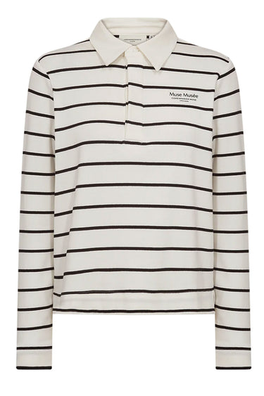 Langærmet poloshirt fra Copenhagen Muse i en eksklusiv kvalitet med yarn dyed striber, små slidser i siderne, et lille logoprint på brystet samt en klassisk polokrave med skjult knaplukning på fronten.