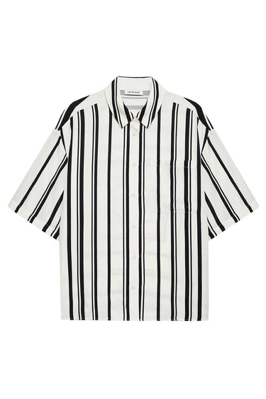Elegant skjortebluse fra Anine Bing med korte ærmer, krave i halsen og små knapper langs fronten.
