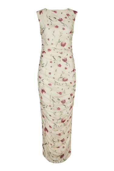 OBS! Fjernlager. Levering kan blive forlænget med 2-3 dage, hvis varen ikke findes i vores butik lige nu.Den smukkeste kjole fra Neo Noir med bådudskæring i halsen, en tætsiddende silhuet og flotte draperet effekter.Kjolen har også et romantisk print og en dejlig blød kvalitet.