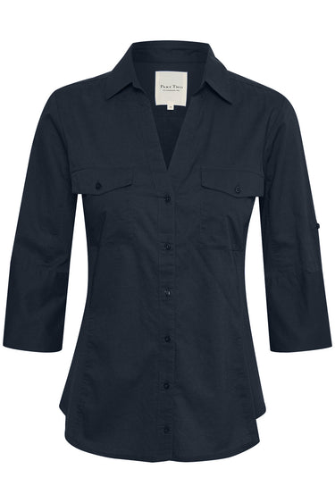 Fin og enkel skjorte med knaplukning og lommer på brystet fra Part Two. Skjorten har fine paneler langs siden og ærmerne.