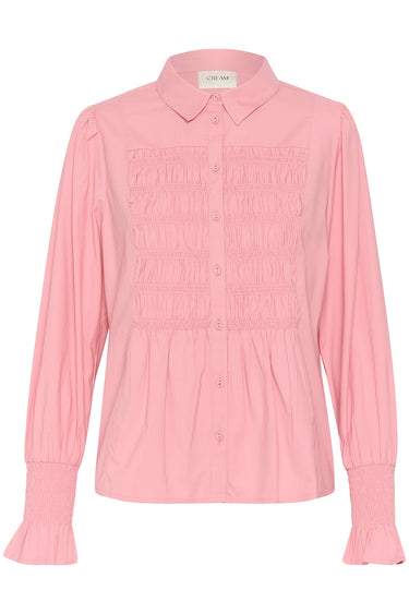 - OBS! Fjernlager. Levering kan blive forlænget med 2-3 dage, hvis varen ikke findes i vores butik lige nu.Sød bluse fra Cream med lange ærmer, skjortekrave i halsen og knaplukning langs fronten og super fine detaljer med flæseeffekter og smock.