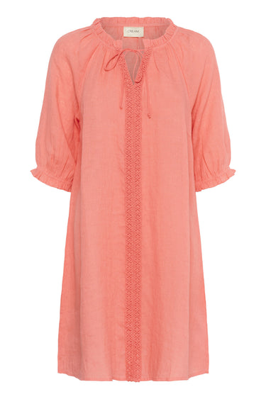 OBS! Fjernlager. Levering kan blive forlænget med 2-3 dage, hvis varen ikke findes i vores butik lige nu.Enkel kjole fra Cream med ½ lange ærmer, rund hals med bindesnor og en klassisk A-form.