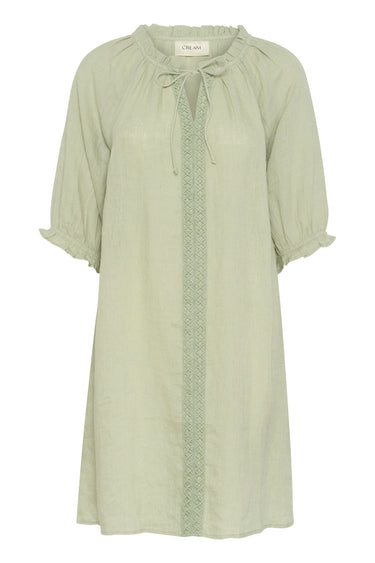 OBS! Fjernlager. Levering kan blive forlænget med 2-3 dage, hvis varen ikke findes i vores butik lige nu.Enkel kjole fra Cream med ½ lange ærmer, rund hals med bindesnor og en klassisk A-form.