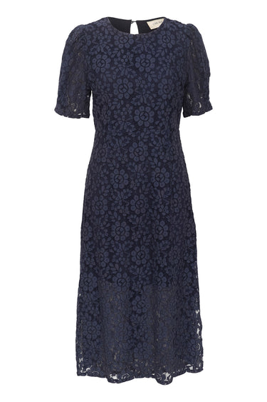 OBS! Fjernlager. Levering kan blive forlænget med 2-3 dage, hvis varen ikke findes i vores butik lige nu.Smuk blondekjole fra Cream med korte pufærmer, rund hals og et fint feminint snit.