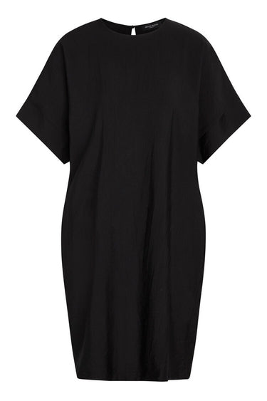 - OBS! Fjernlager. Levering kan blive forlænget med 2-3 dage, hvis varen ikke findes i vores butik lige nu.Smart enkel kjole fra Bruuns Bazaar med korte ærmer, rund hals og en dejlig afslappet pasform.