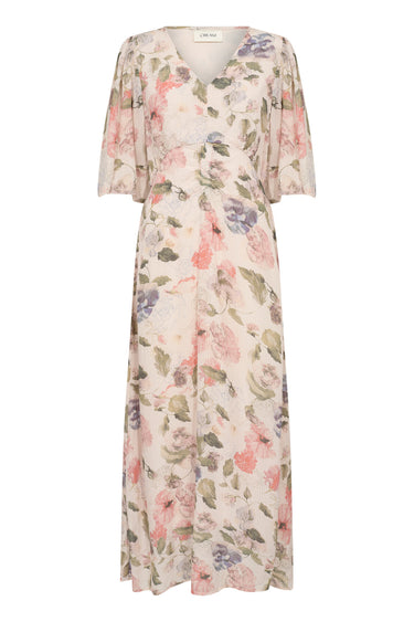- OBS! Fjernlager. Levering kan blive forlænget med 2-3 dage, hvis varen ikke findes i vores butik lige nu.Smuk kjole fra Cream med ½ lange flæseærmer, v-udskæring i halsen og et feminint snit med det flotteste blomsterprint.