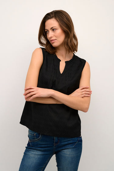 - OBS! Fjernlager. Levering kan blive forlænget med 2-3 dage, hvis varen ikke findes i vores butik lige nu.Sød top fra Cream med rund hals og en lille v-udskæring, en smal flæsekant og en dejlig let kvalitet.