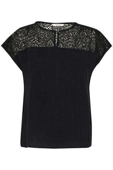 OBS! Fjernlager. Levering kan blive forlænget med 2-3 dage, hvis varen ikke findes i vores butik lige nu.Feminin bluse fra Cream med korte ærmer, rund hals og en smuk blondekvalitet omkring skulderne.