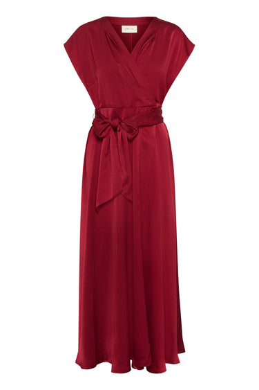 OBS! Fjernlager. Levering kan blive forlænget med 2-3 dage, hvis varen ikke findes i vores butik lige nu.Smuk kjole fra Cream med små ærmer, v-udskæring og et bredt bindebælte i taljen.Kjolen har også en feminin silhuet, slids i bunden og den smukkeste kvalitet med et flot finish.