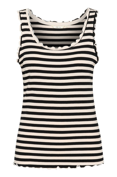 OBS! Fjernlager. Levering kan blive forlænget med 2-3 dage, hvis varen ikke findes i vores butik lige nu.Smart stribet top fra Cream med rund hals og super fine krøllede kanter.