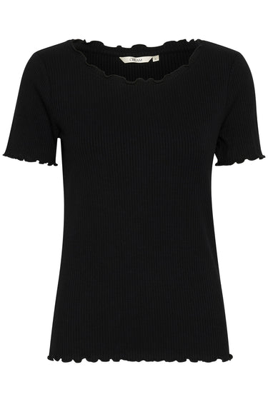 - OBS! Fjernlager. Levering kan blive forlænget med 2-3 dage, hvis varen ikke findes i vores butik lige nu.Fin top fra Cream med korte ærmer, rund hals og flotte krøllede kanter.