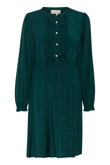 OBS! Fjernlager. Levering kan blive forlænget med 2-3 dage, hvis varen ikke findes i vores butik lige nu.Fin kjole fra Cream med lange ærmer, kinakrave i halsen og skønne flæser omkring knappanelet i fronten.Kjolen har også en feminin silhuet og en dejlig kvalitet.