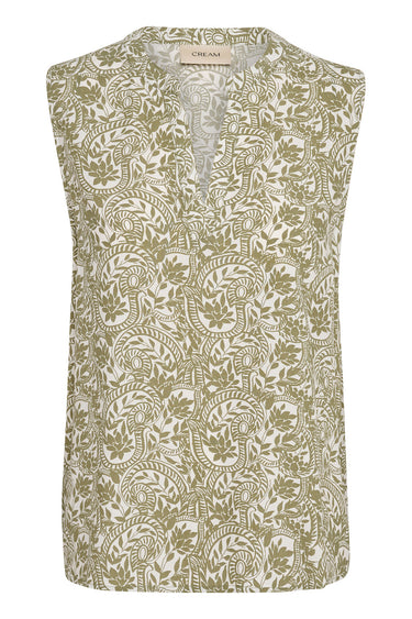 - OBS! Fjernlager. Levering kan blive forlænget med 2-3 dage, hvis varen ikke findes i vores butik lige nu.Sød top fra Cream med v-udskæring i halsen og et fint print.
