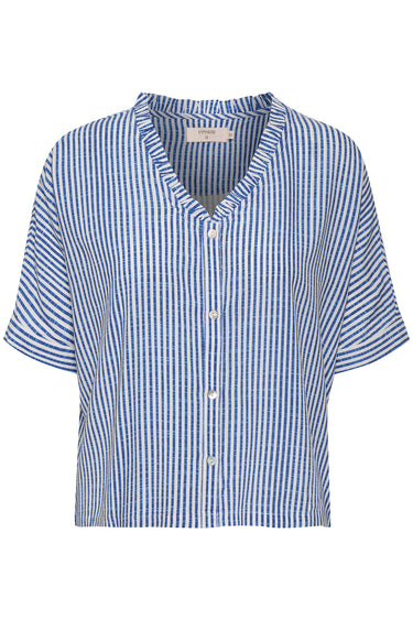 OBS! Fjernlager. Levering kan blive forlænget med 2-3 dage, hvis varen ikke findes i vores butik lige nu.Sød bluse fra Cream med korte ærmer, v-udskæring i halsen og knaplukning foran.