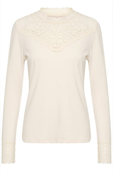 OBS! Fjernlager. Levering kan blive forlænget med 2-3 dage, hvis varen ikke findes i vores butik lige nu.Feminin bluse fra Cream med lange ærmer, rund hals og en slim-fit pasform.Blusen har også smukke blondedetaljer og en dejlig blød kvalitet.