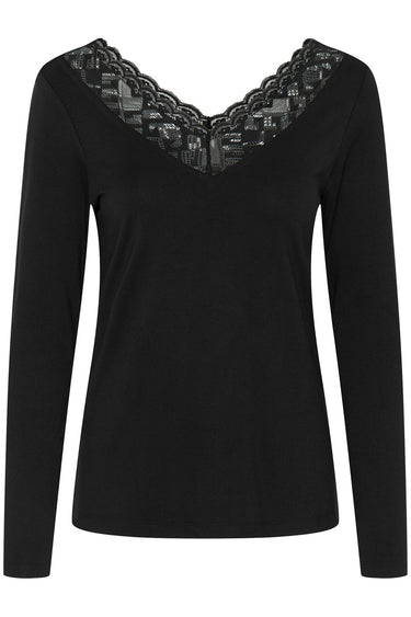 OBS! Fjernlager. Levering kan blive forlænget med 2-3 dage, hvis varen ikke findes i vores butik lige nu.Feminin bluse fra Cream med lange ærmer og v-udskæring med smukke blondekanter.