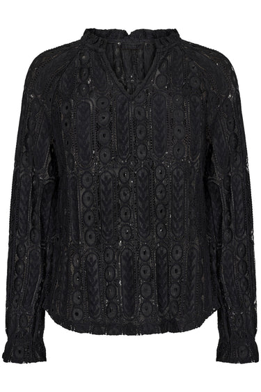 CRTully VNeck Lace Blouse Pitch Black