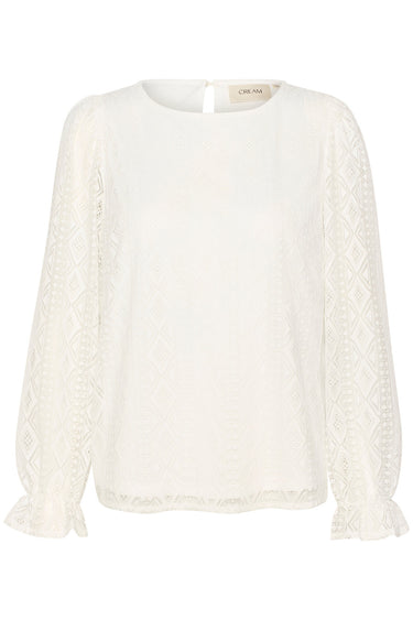 - OBS! Fjernlager. Levering kan blive forlænget med 2-3 dage, hvis varen ikke findes i vores butik lige nu.Elegant og feminin bluse fra Cream med lange pufærmer, rund hals og den smukkeste broderet kvalitet.
