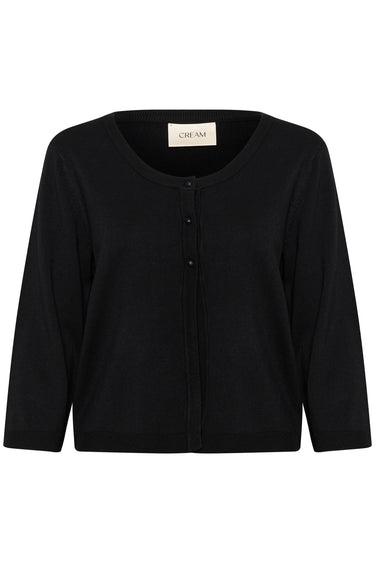 OBS! Fjernlager. Levering kan blive forlænget med 2-3 dage, hvis varen ikke findes i vores butik lige nu.Smart bolero fra Cream med ¾ lange ærmer, rund hals og knaplukning langs fronten.Cardiganen har også en cropped længde og en dejlig blød kvalitet.